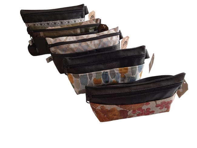 Riñonera de polipiel con bolsillo de cremallera y bolsillo exterior frontal con divisiones para móvil, lápices...etc. Medidas 25 cmx 12 cm y la base 6 cm de ancho.